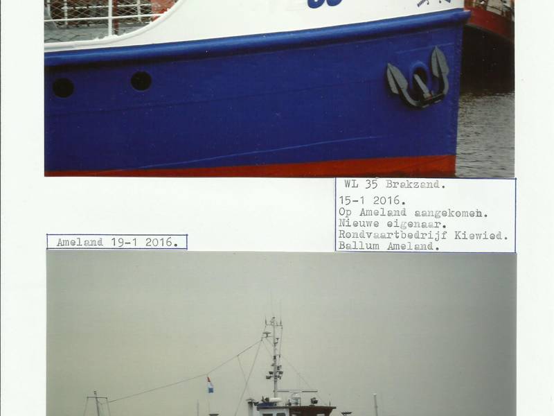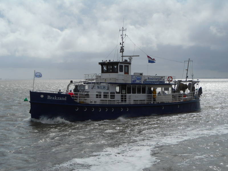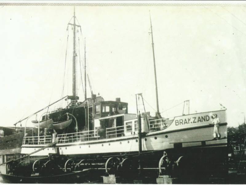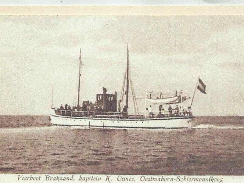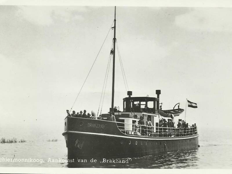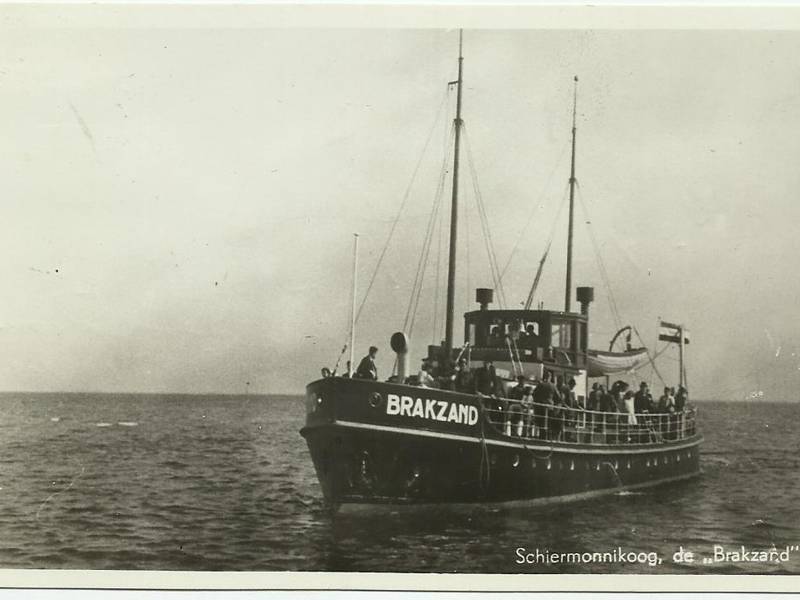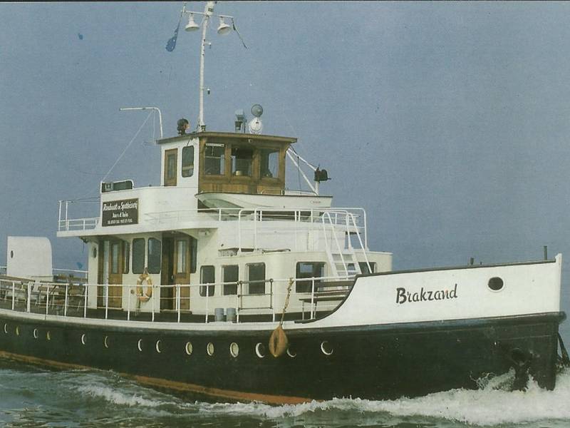 Von 1928 bis Ende der 1960er Jahre wurde unser Schiff als Fähre zwischen Zoutkamp/Oostmahorn und Schiermonnikoog eingesetzt. Die Brakzand wurde 1968 außer Dienst gestellt. Danach wurde das Boot als Peilboot und Verwaltungsboot für Rijkswaterstaat eingesetzt.